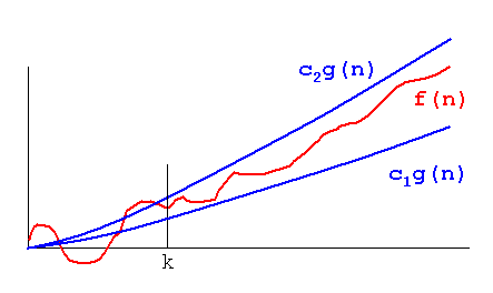 Theta : Θ(g) = {f : N -> R+, ∃ c ∈ R+, ∃ B ∈ N, ∀n ∈ N, n ≥ B => c1 g(n) ≤ f(n) ≤ c2 g(n)